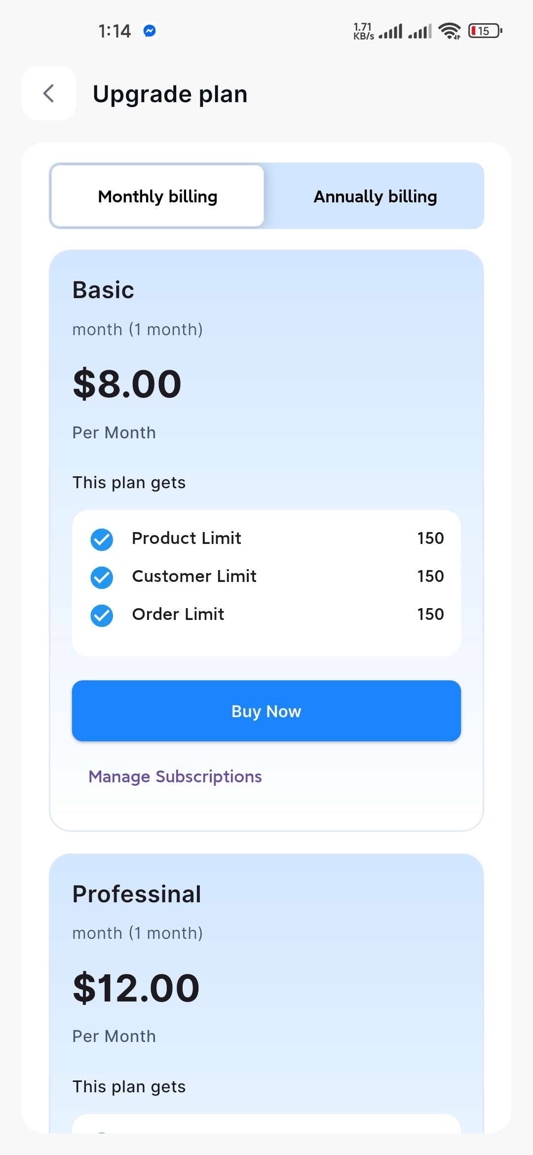 Choose either the Monthly Billing or Annual billing plan based on your preference.