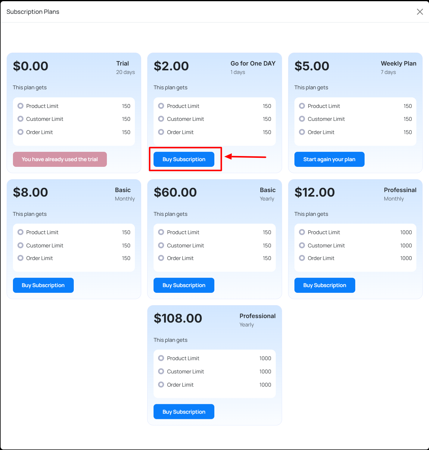 If you click the By Subscription button, a different subscription plan will appear. You can choose any plan for the subscription.
